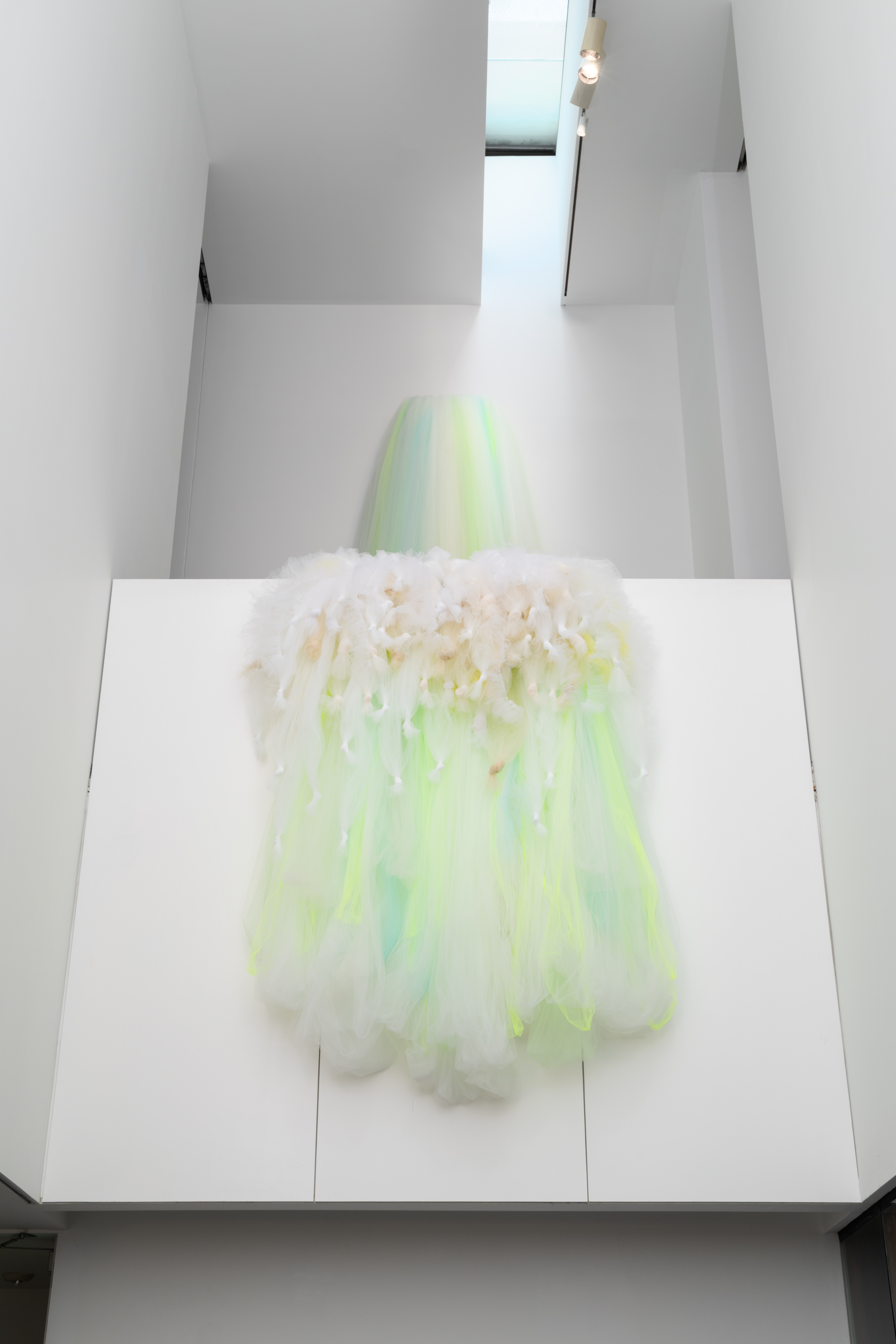 I’m a painter and tulle and the fabrics that I have an attraction to allow me to paint with fabric. So I use all these different colors, but by layering them I can make other colors. The tulle allows me to make these sculptures and give shape and work with volume in a way that paint doesn’t let me.