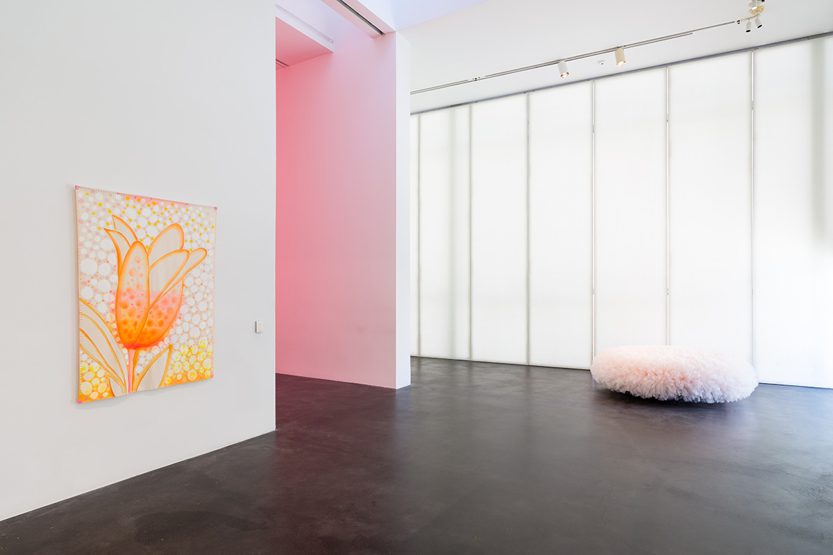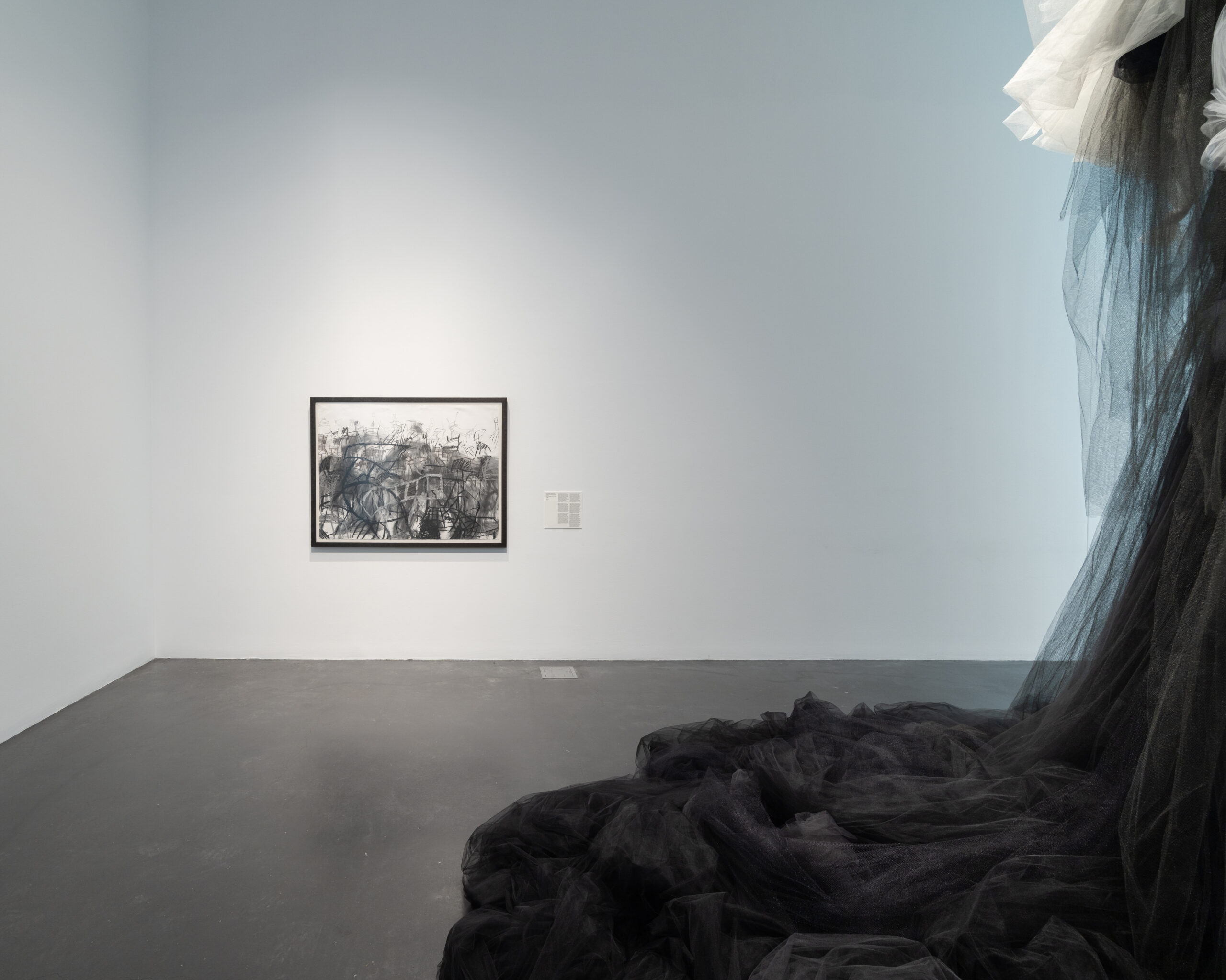 Hernando, a Colorado-based artist who grew up in Buenos Aires during the coup and came of age as an artist after the return of democracy in 1983, carries this history into our own present moment with Seguir Cantando, the centerpiece of which are two 12’ waterfalls made of some 8,500 yards of pink tulle.