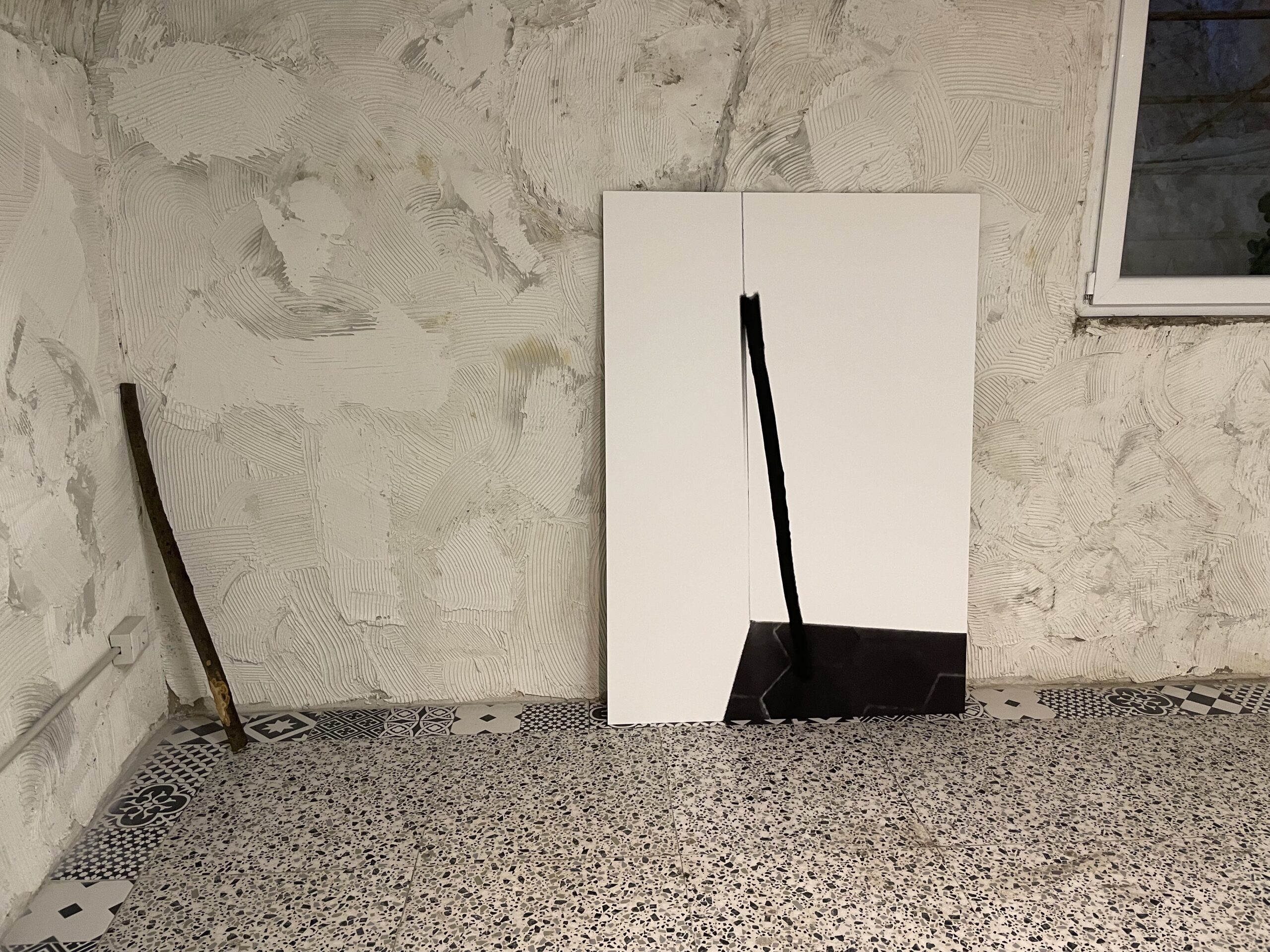 The result: “From Fulfillment to Adaptation.” Shown at a Seconde Vue, a concept space by Federica Dollfus Di Volkersberg and curated by Guglielmo Corbo who was introduced to me by a French curator Gèraldine Postel. The exhibition entailed two pieces. A club found by Andrea and Fernando on the Academy campus—ostensibly to fix a sagging clothes rack—but turned out too short for the task. I couldn’t not see it as Hercules’s club, forlorn in the corner, without function. So I adopted it, as I often do, and photographed it—letting the object make the piece, both suture and photograph.
