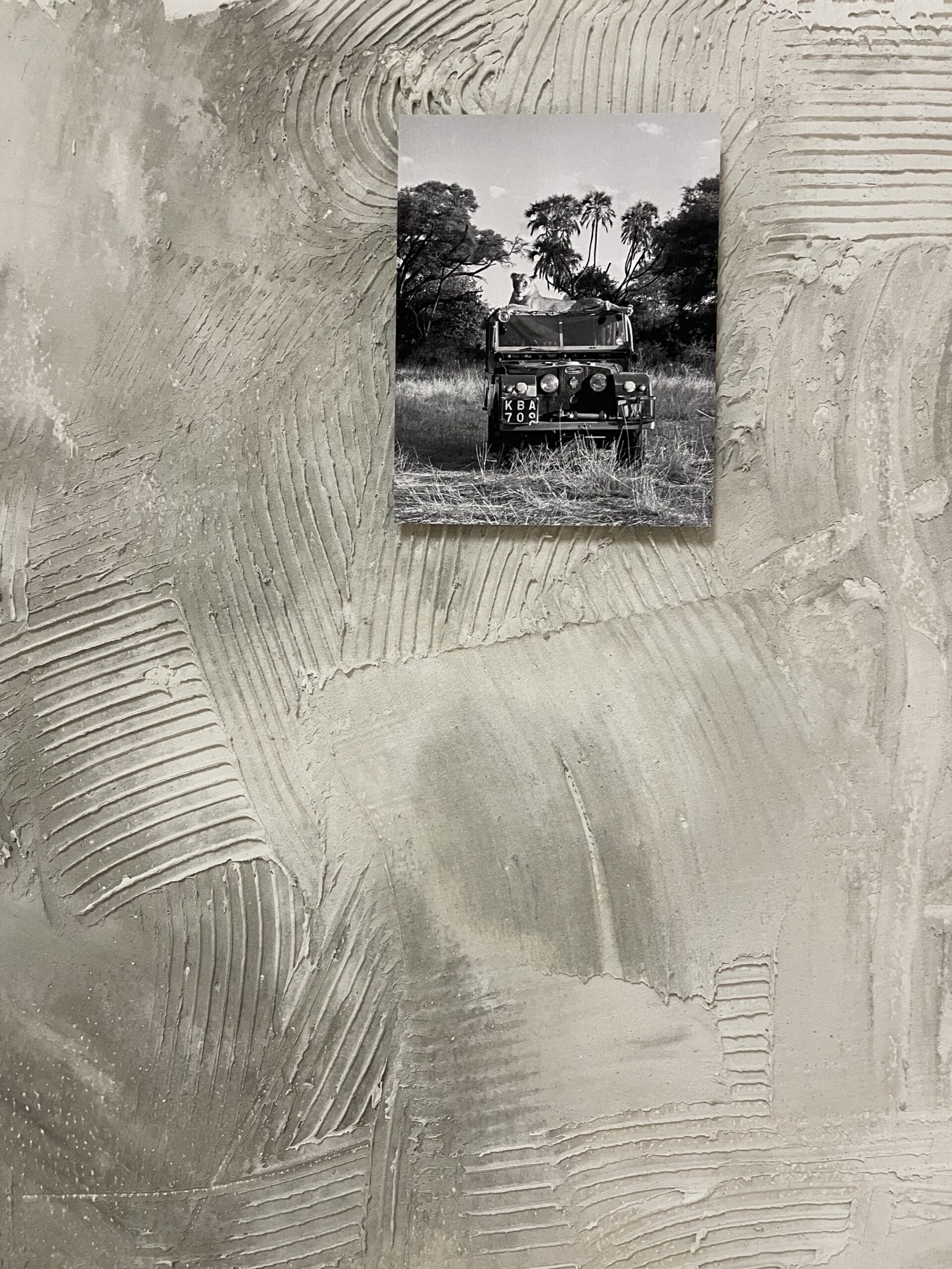 Elsa the lioness of Born Free fame lying on the roof of the Adamson’s Series 1 Landrover, Kenya. 26.5 x 34.5 cm, 2018 © Mark Boulton / Alamo Stock Photo.