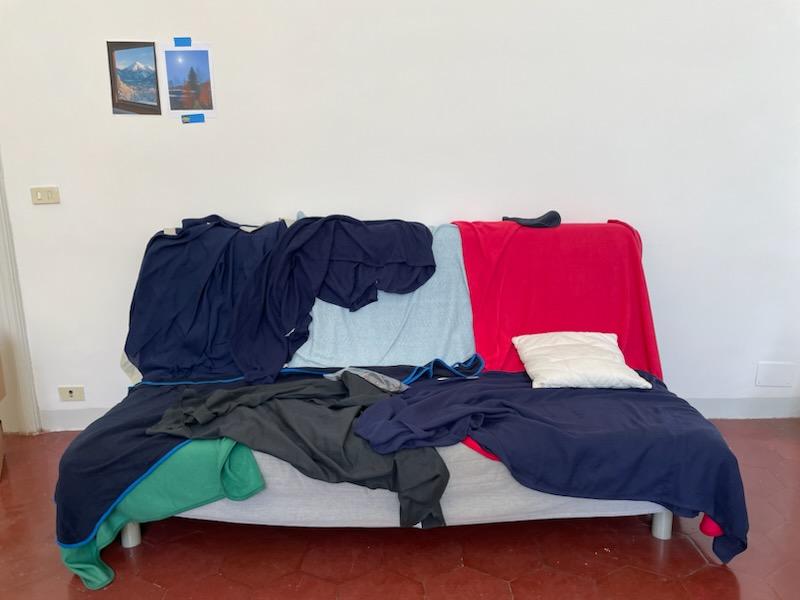 Devon Dikeou, Red Eye (Rome Prize), 2024/2025 Ongoing, Airplane Blankets from Lufsthansa, United, American, Delta, Air Canada, and Latam, Collected by Fellows and Fellow Travelers on Transatlantic Flights