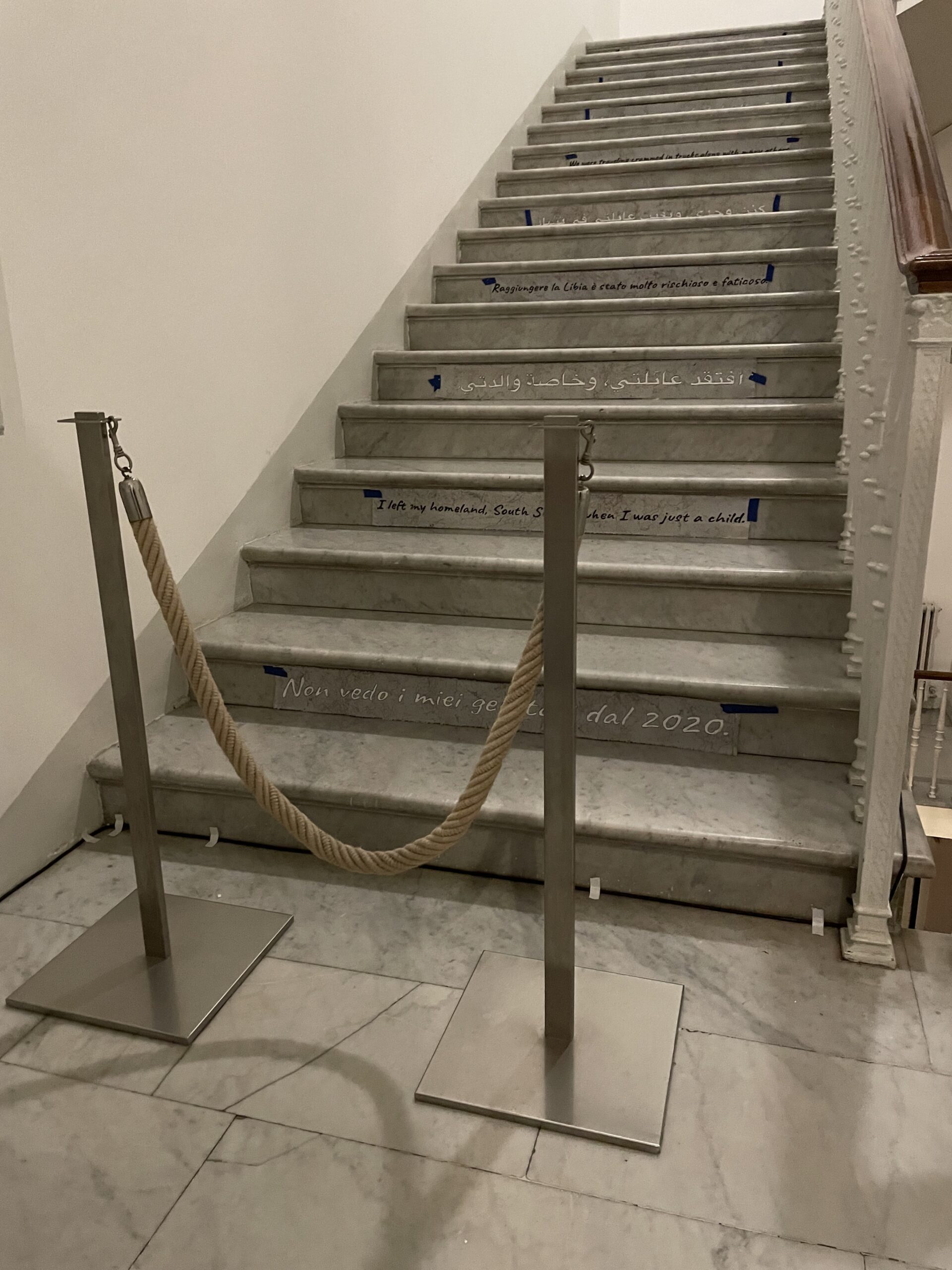 And lastly, Velvet Rope, in which I used the AAR rope stanchion placed at the foot of the staircase—meant to keep those deemed “not worthy” away from private areas of the Academy. I acted as bouncer . . . And I let everyone in, one by one, marking them with a Sharpie, just like they were getting into Studio 54, Palladium, the World, Area, or even the Academy. It’s a very exclusive club . . .
